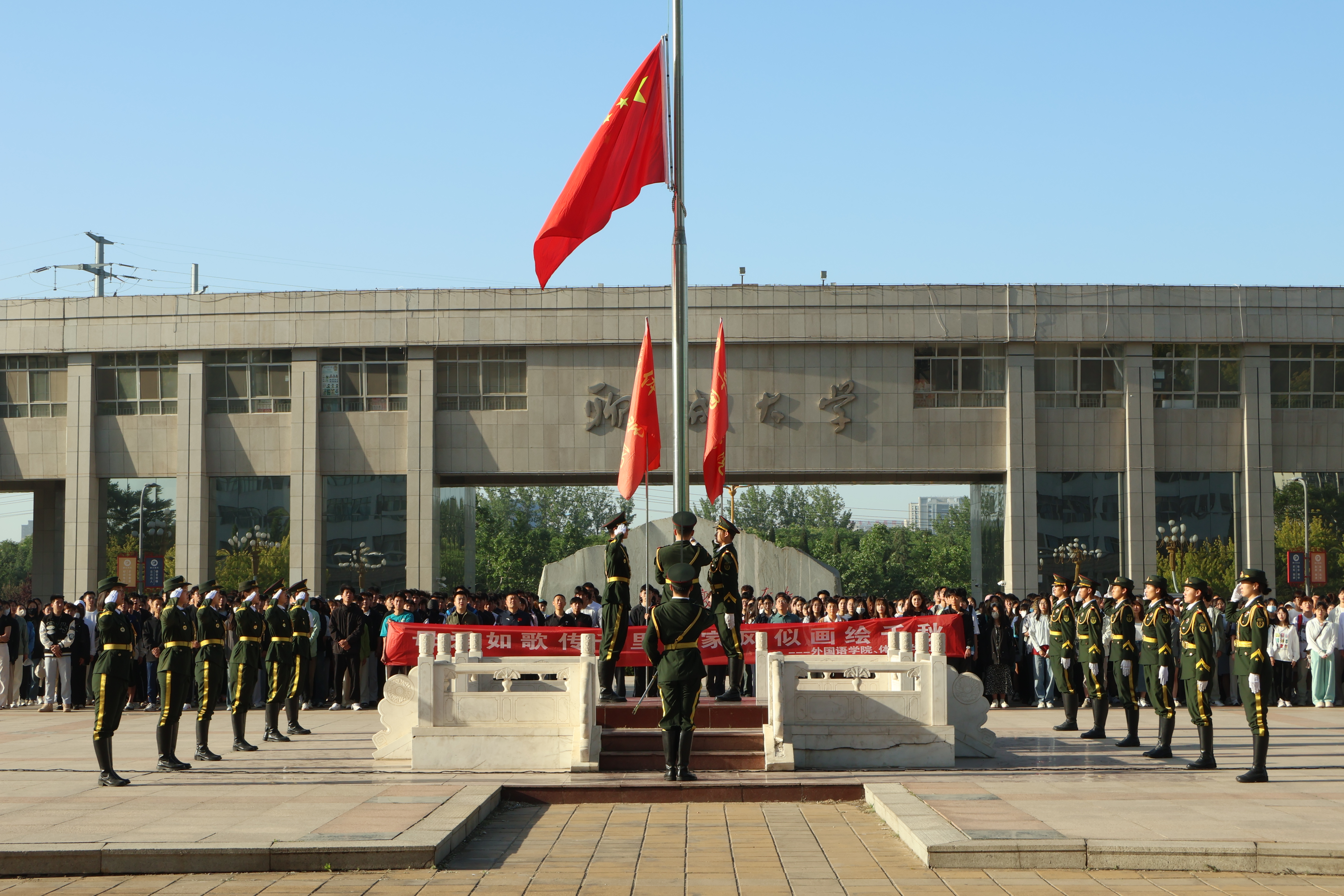 mk体育、体育公司师生代表于6:40前入场完毕。主持人介绍此次活动主题和意义后,升旗仪式正式开始。伴随着激昂的国歌,国旗护卫队队员迈着铿锵有力的步伐,护送五星红旗走向升旗台。全体师生庄严肃立,面向冉冉升起的国旗行注目礼,展现出昂扬的精神状态与风貌。