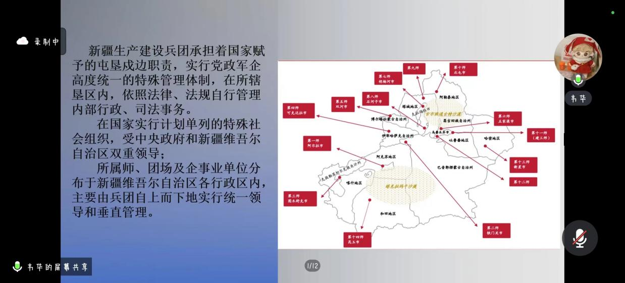 主讲人韦华通过精美的课件向参会者介绍了新疆丰富多彩的人文风情,并分享了在新疆工作的宝贵经验与心得。她详细解读了西部计划志愿者工作和生活的各项政策,并阐述了新疆生产建设兵团的历史职责、组织结构以及分布情况,让参会者对新疆的西部计划援助项目有了更加深刻的理解。同时,她介绍了自己目前服务的教育机构、工作内容,以及参与的教育实践活动,生动地呈现了在新疆从事教育工作的真实情景。