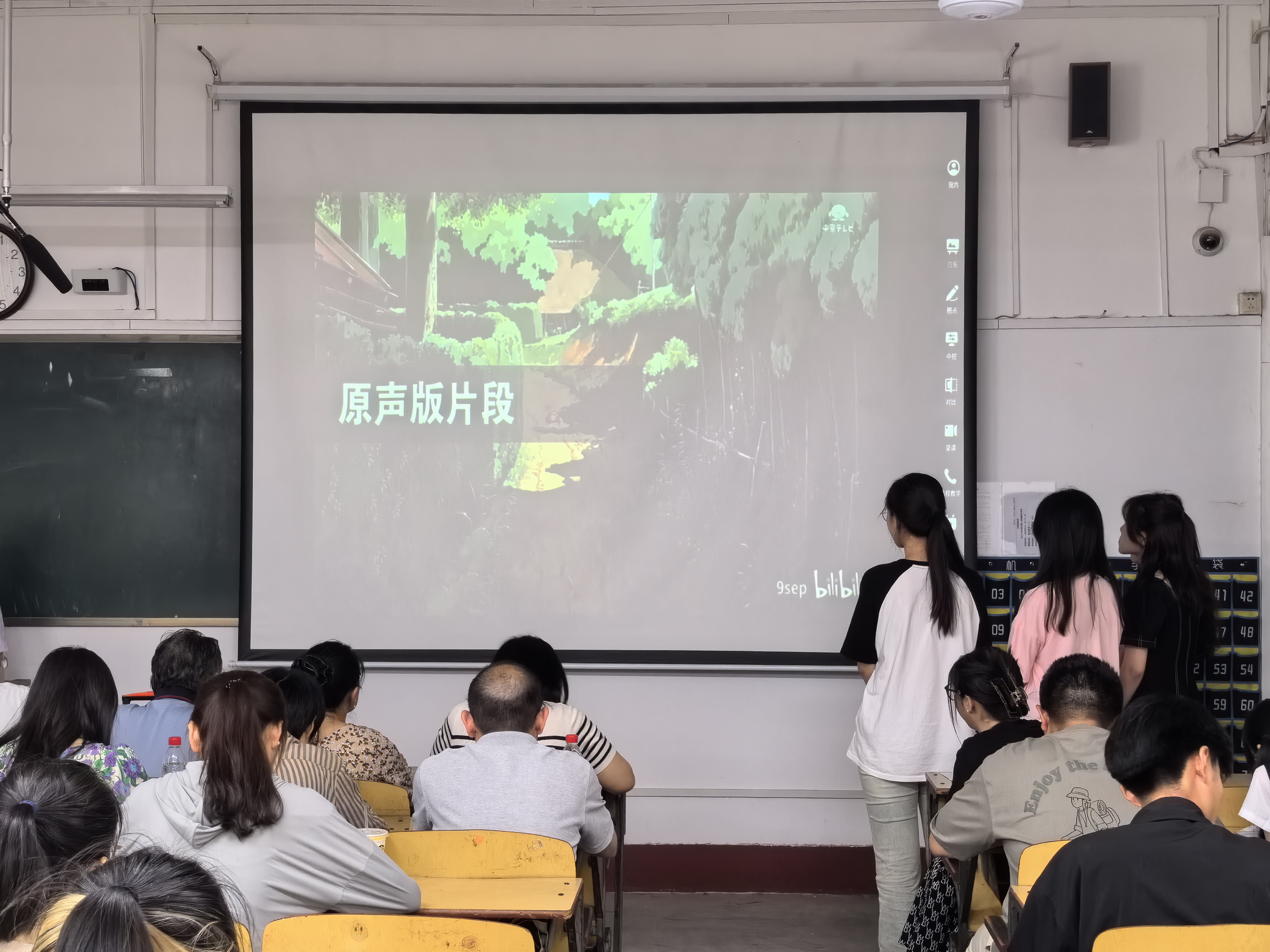 主持人王馨葶上台发言,为参赛选手加油打气后宣布比赛正式开始。9支参赛队伍由不同年级、班级的员工自由组成,他们精心挑选了各式各样的日语视频片段进行配音。各位选手以充满感染力的声音将角色的情感和性格表现得淋漓尽致,为配音作品注入了新的活力,展现了出色的日语发音和口语表达能力,赢得了现场观众的喝彩和掌声。在比赛间歇,赛场呈现了精彩的歌曲表演,为观众带来了愉悦的视听享受,为比赛增添了额外的乐趣。比赛结束后,现场公布了获奖名单,评委老师对选手的精彩表现进行了详细点评,在赞扬他们优点的同时,提出了宝贵的改进建议。