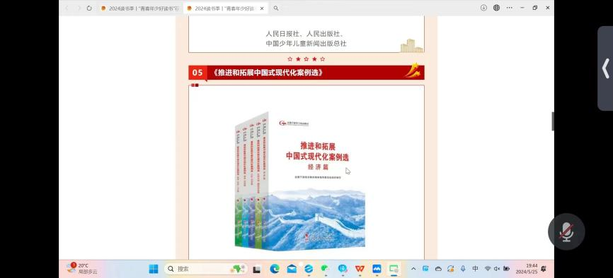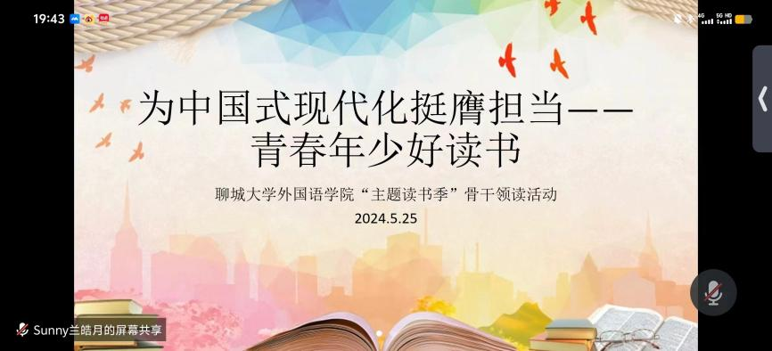 为通过好书推荐、读书分享,引导广大青年回顾党的光辉历史,理解中国伟大变革,学习理解党的创新理论,为中国式现代化挺膺担当,5月25日,mk体育研究生会借助腾讯会议举办了“为中国式现代化挺膺担当——青春年少好读书”骨干领读活动,部分研究生会成员参加此次读书会。
