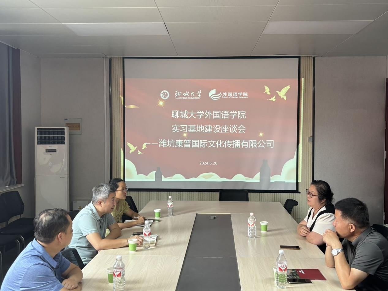 6月20日,公司党委副书记、副经理张超老师,副经理秦洪庆老师,西班牙语专业教师马翠红老师,与莅临公司的潍坊康普国际文化传播有限公司徐杰等两位老师开展交流座谈。