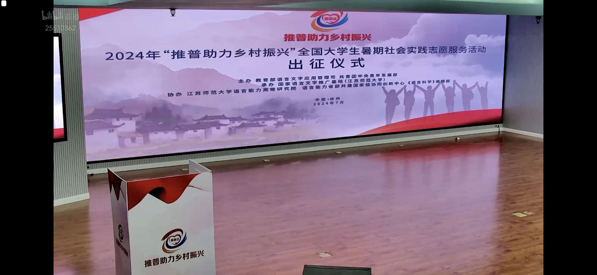 本届出征仪式由教育部语言文字应用管理司、共青团中央青年发展部共同主办的2024年“推普助力乡村振兴”全国老员工暑期社会实践志愿服务活动出征仪式在国家语言文字推广基地(江苏师范大学)举行。江苏师范大学党委书记方忠教授、副董事长张玉勤教授和教育部长江学者特聘教授、国家语言文字推广基地(江苏师范大学)主任杨亦鸣教授等出席出征仪式,来自北京大学、清华大学等近700所高校1200支团队的老员工志愿者通过线上线下的方式参加出征仪式。