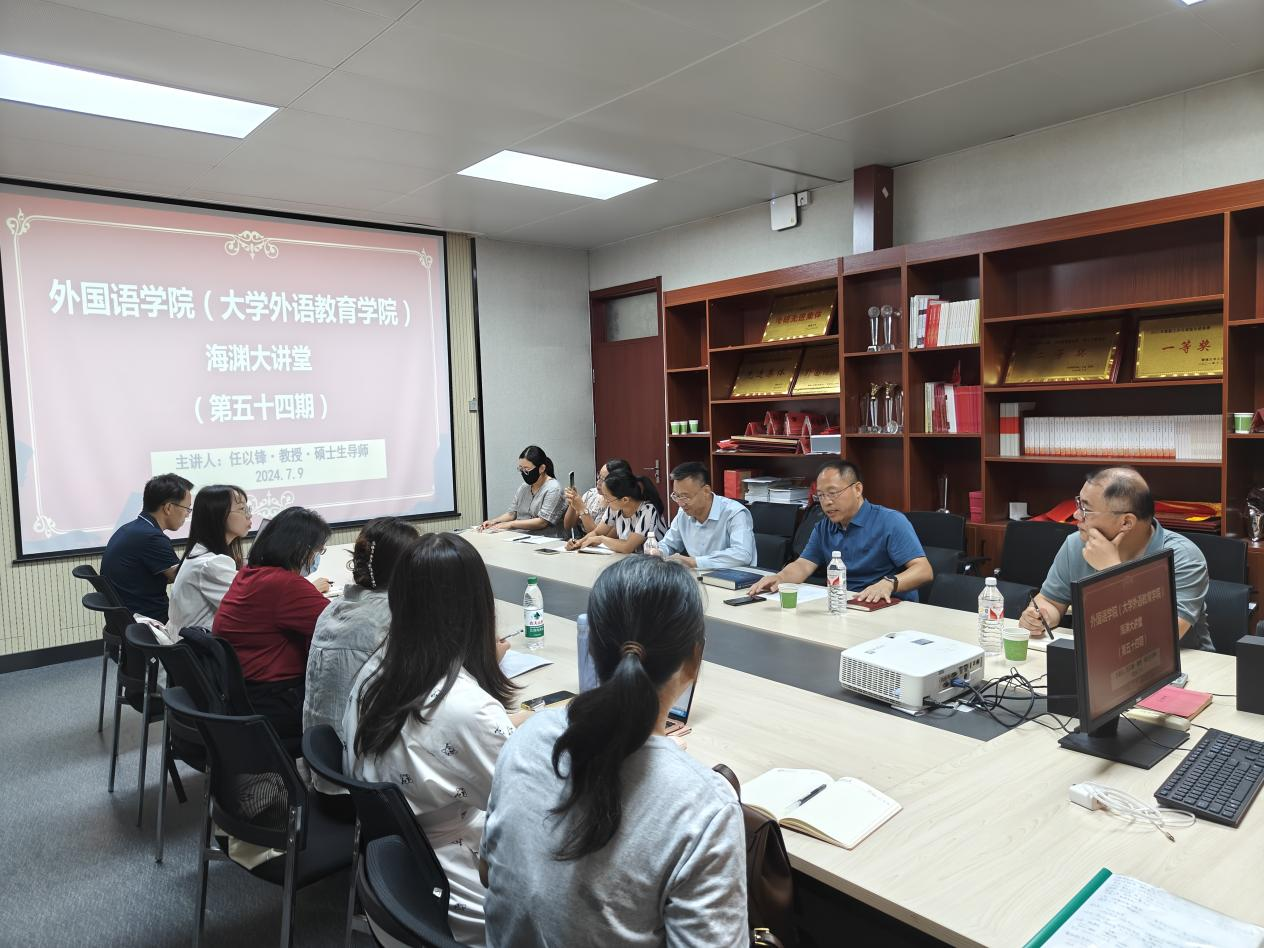 讲座中,任以峰教授以生动的语言、丰富的案例,深入浅出地分享了自己在经济全球化进程中的亲身经历与深刻感悟。他通过讲述“机会成本”“东食西宿”等故事,强调外语教师除了精通语言教学外,还需具备跨学科知识素养,以更好地培养员工的综合能力和国际视野。同时,任教授还结合自身在恢复关贸总协定及中国加入世贸组织过程中的所见所闻,讲述了吴敬琏的熵增定律、林毅夫的草船借箭等故事,生动展现了我国参与全球经济治理的艰辛历程与辉煌成就,深深打动了在场的每一位听众。