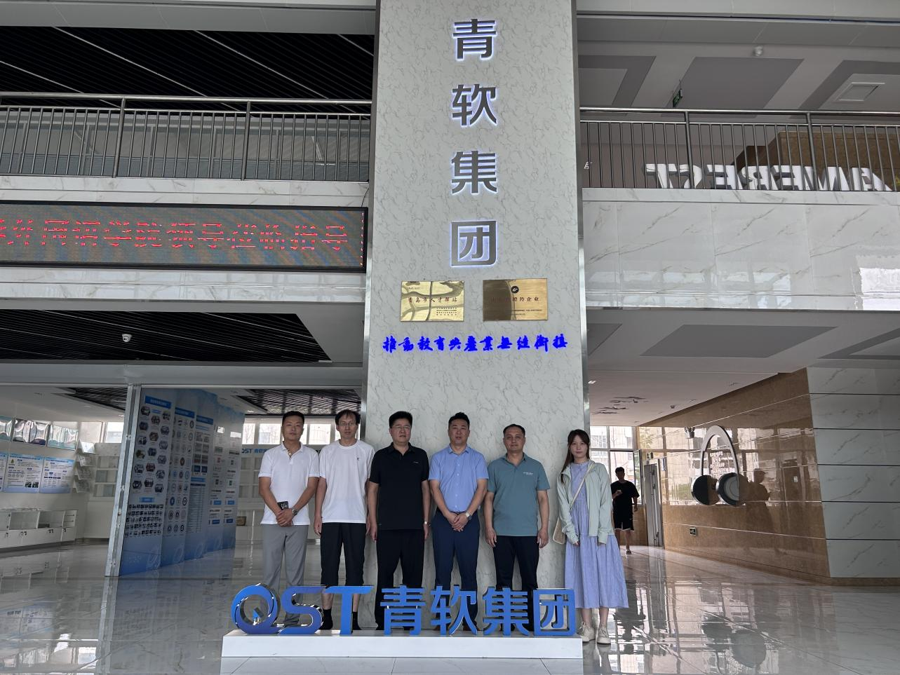 7 月12日,公司党委书记王洪月老师、党委副书记张超老师、组织员吕自先老师、辅导员钱晓琪老师以及认知实习带队教师林娜老师,赴校企合作单位——青软创新科技集团股份有限公司,开展访企交流会谈。
