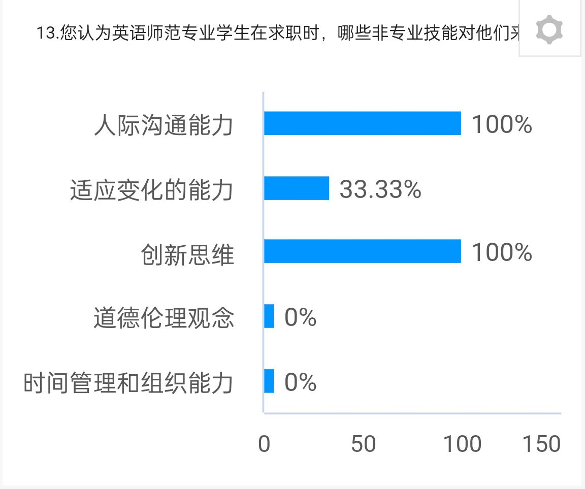 初期访谈以线上问卷形式进行,采用了国际上广泛认可的李克特量表进行数据收集,量化了受访者对各个问题的态度和看法。数据显示,三位教师对英语师范专业的就业前景和职业生涯初期面临的薪资待遇大多持中立态度。此外,她们一致赞同员工需要通过参加课外活动或社会实践来提升自己的综合素质,导员杨春雪指出,参与翻译或国际化的项目、多与外国友人交流有助于提升员工的综合素质。