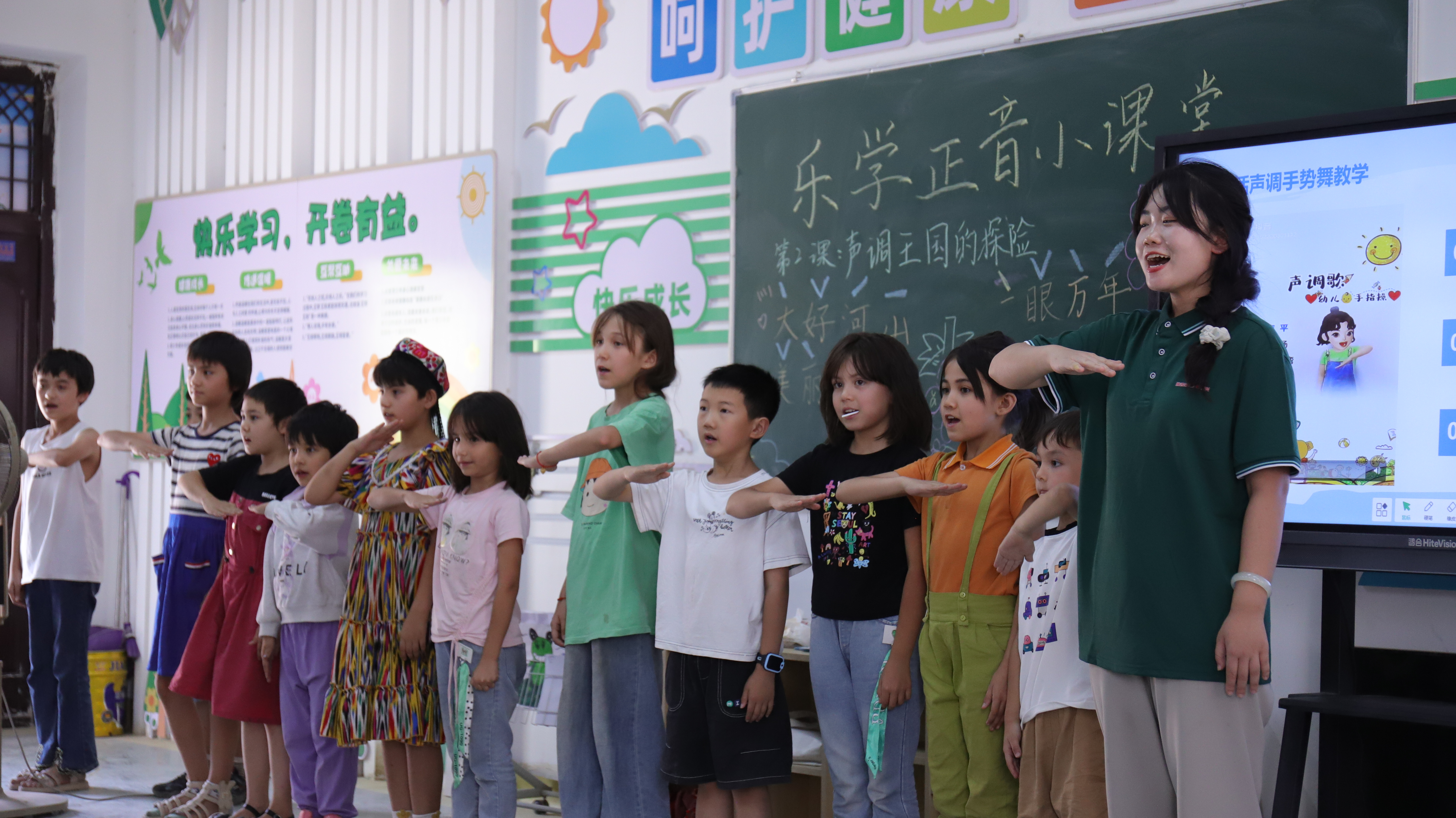 在乐学正音小课堂上,志愿者们以“”新疆特色水果”与“”拼音配对”等小游戏引入,对社区儿童开展普通话声母、韵母基础知识教学;课堂通过拼音操、“绕口令”闯关等趣味互动,不仅夯实了正音基础,而且激发出孩子们对于学习普通话的热情。