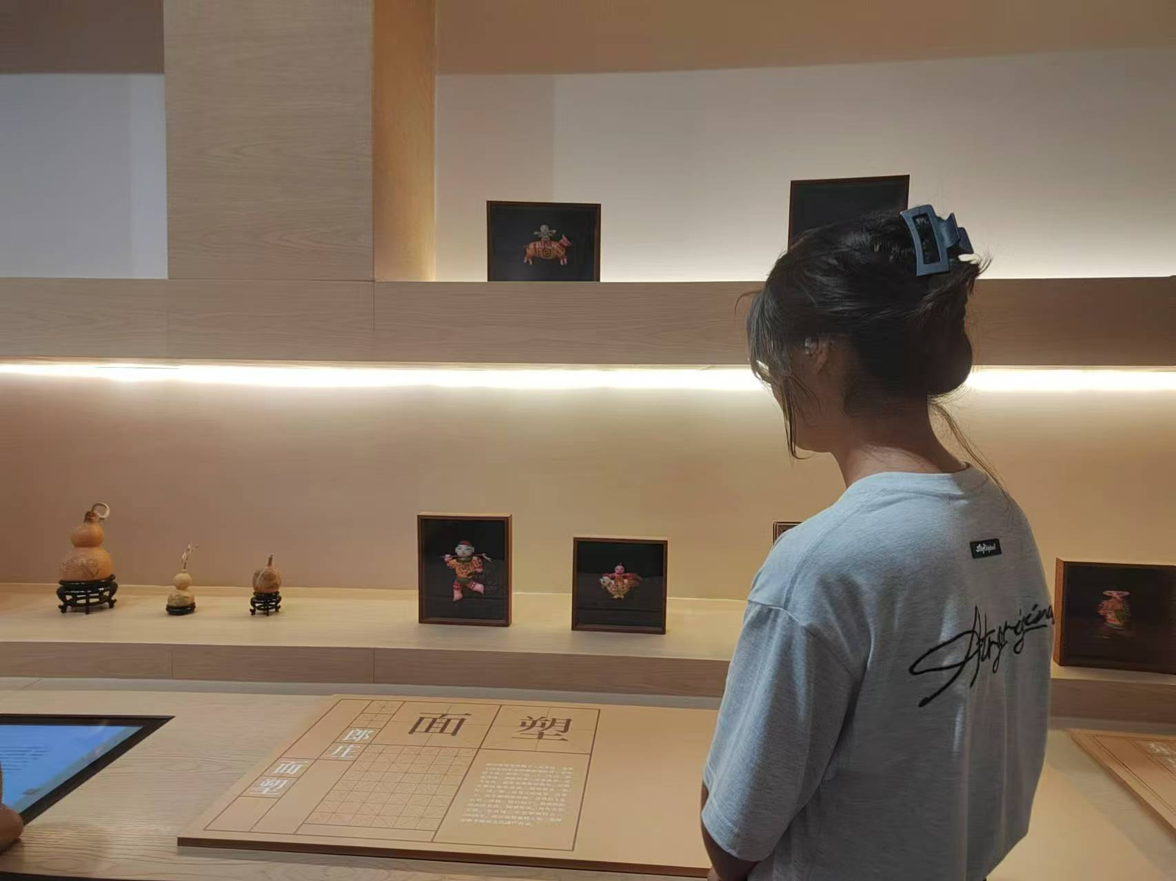 调研准备过程中,全都队进行了充分的资料采集,深刻认识到运河非遗文化传承保护的重要性和紧迫性。在调研过程中,全都队成员认真参观博物馆内的面塑、雕刻、木板年画等展区,详细记录了相关图文信息,对文物、图文资料以及多媒体展览进行了深入细致的研究,重点观察了融媒体展览的呈现形式和内容传递方式。此外,实践队积极与博物馆工作人员沟通交流,倾听他们的见解和经验,深入了解博物馆在融媒体展览策划方面的具体工作,包括策划思路、面临的困难以及所取得的成果。实践队成员直观体会到了博物馆在宣传聊城非遗文化中起到的重要作用,深刻认识到了只有充分利用好融媒体这一工具,才能更好地推广文旅产业,为聊城地区文旅的发展注入新的活力。
