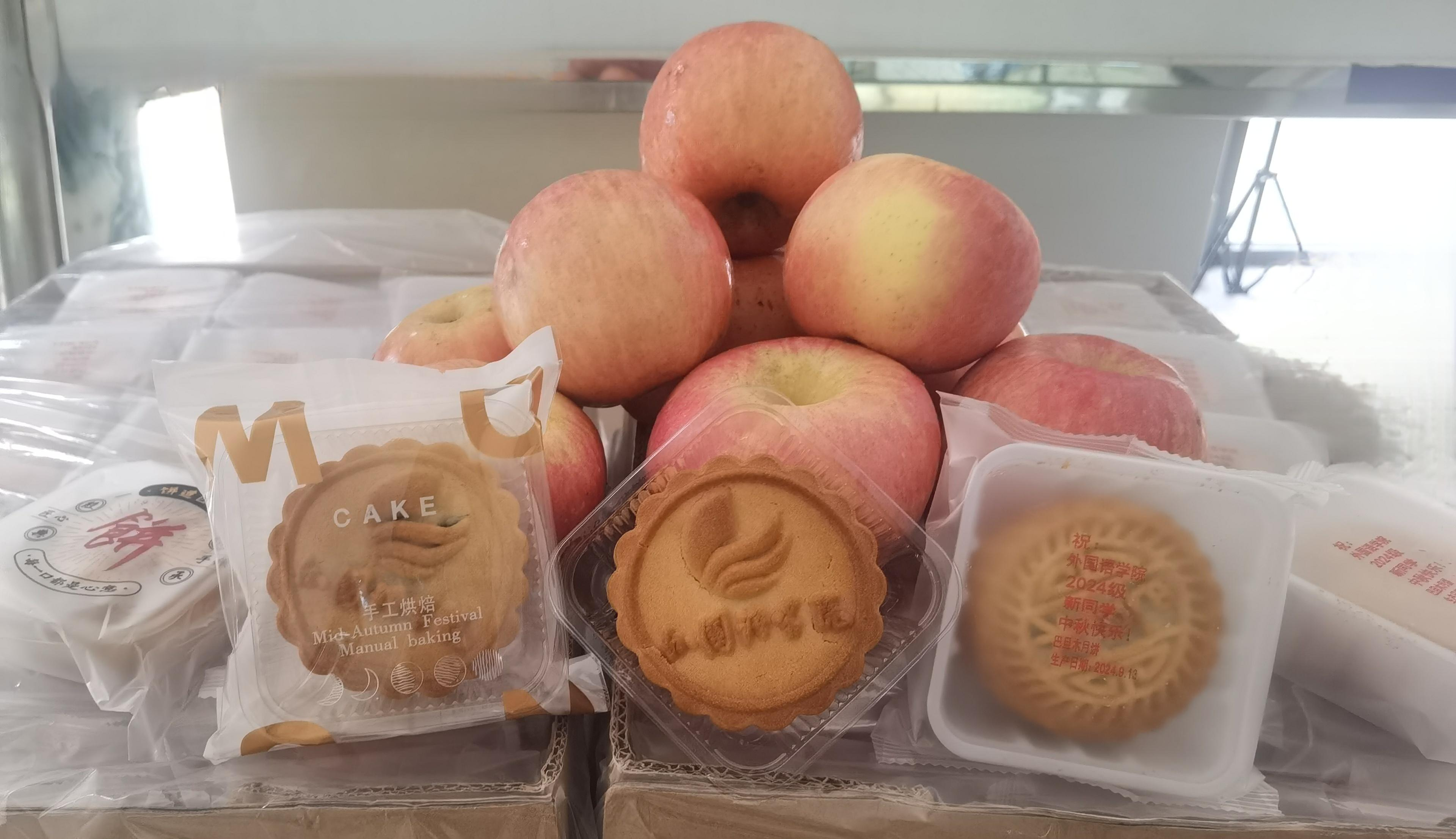 接着,各位领导教师向新生同学以及军训教官分发中秋节礼品,其中包括公司特别定制的月饼和红润的苹果,传递了节日的温馨与祝福。新生们双手接过礼物,脸上流露出幸福的笑容。这一温馨的举措不仅让学子们感受到了公司的关爱,也让新生在紧张的军训生活中体验到了节日的甜蜜与幸福。在活动的最后,全体新生手持月饼和苹果,满怀感激地向领导老师们齐声致谢,并祝愿老师们中秋节快乐。这一幕充满了温馨与感动,深刻体现了师生之间浓厚的情谊。