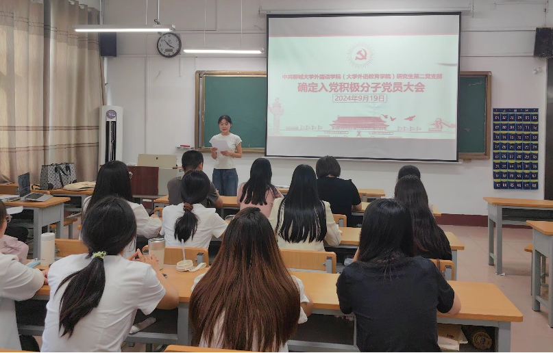 为进一步推动党员发展工作,增强党支部的凝聚力与战斗力,9月19日下午,mk体育(大学外语教育公司)于1#A404召开研究生第二党支部确定入党积极分子党员大会。会议采用线上线下相结合的方式,研究生第二党支部书记张晓冬出席,支部全体党员及拟推荐入党的积极分子参加。