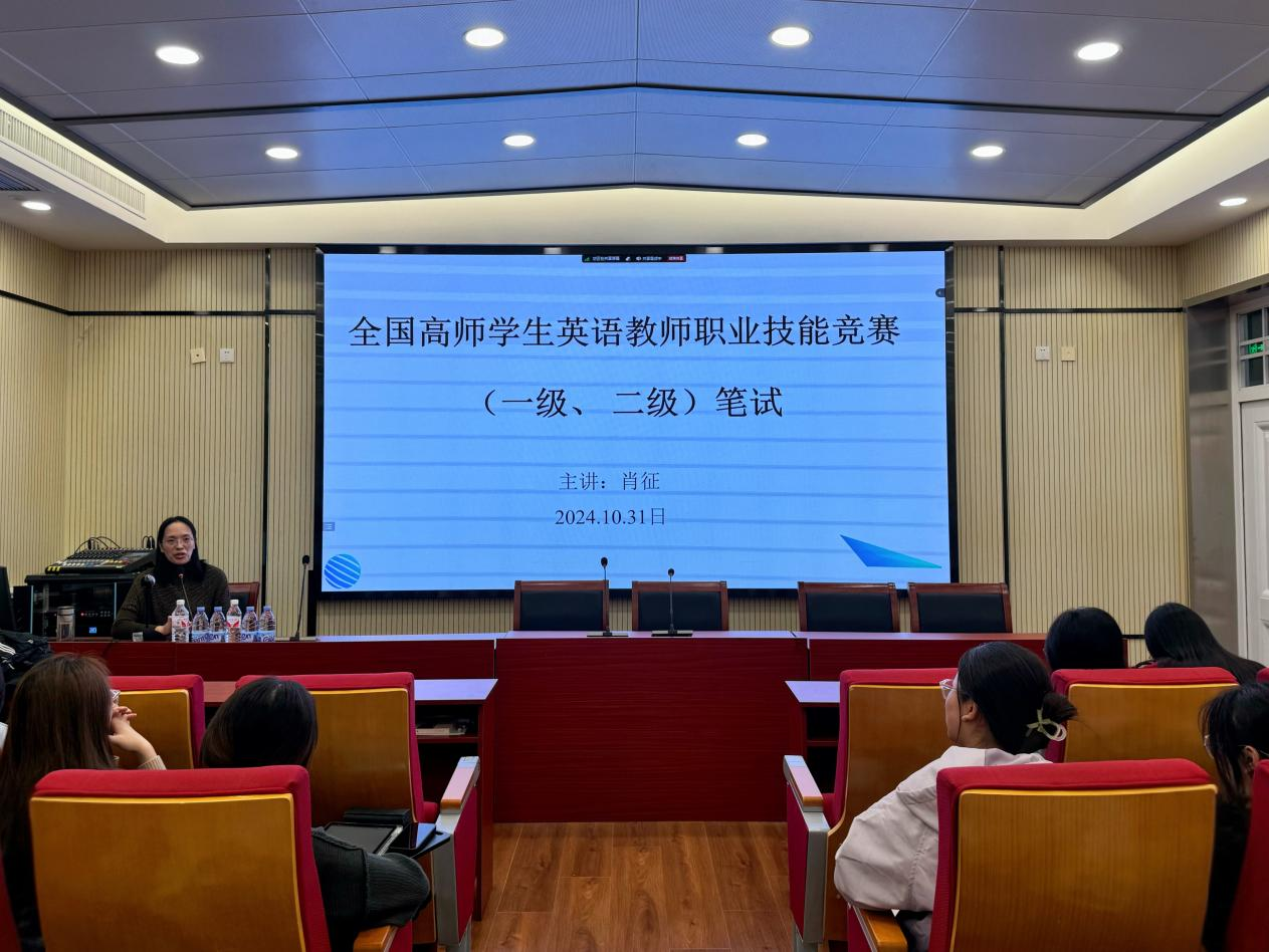 为增进员工对2024年全国高师员工英语教师职业技能大赛的理解与认识,指导员工高效、准确地备赛,提升他们的参赛积极性与自信心。mk体育于10月31日在西1#C405报告厅举办了线上线下相结合的2024年全国高师员工英语教师职业技能大赛笔试专题辅导讲座。本次活动特邀英语系教师肖征担任主讲,mk体育、齐鲁师范公司、德州公司、山东航空公司、菏泽公司的参赛员工参与了此次讲座。