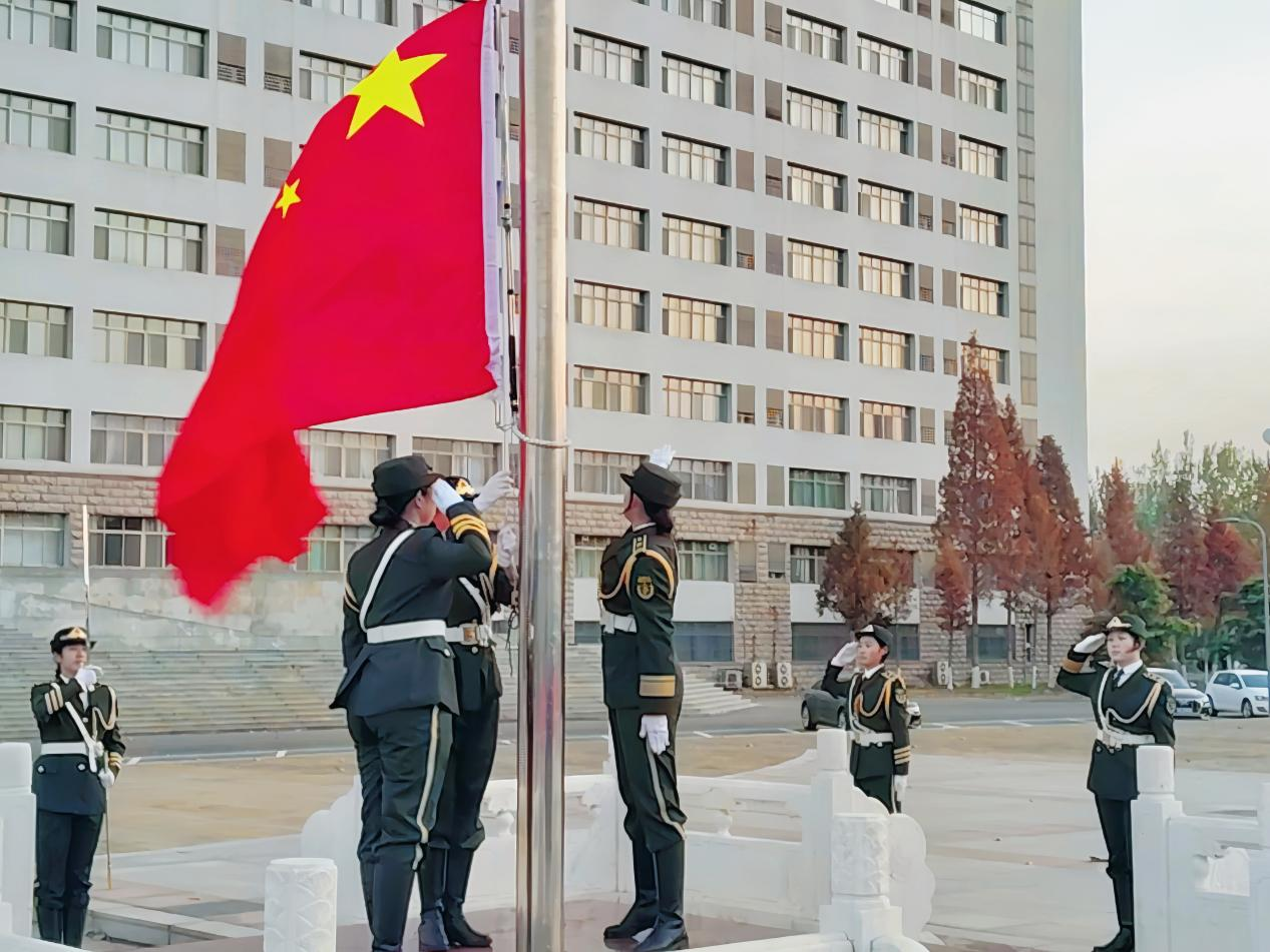 上午7时,英姿飒爽的国旗护卫队迈着铿锵有力的步伐,以昂扬的姿态护送鲜艳的五星红旗走向升旗台,伴随着激昂的《义勇军进行曲》,鲜艳的五星红旗缓缓升起,全体师生面向国旗行注目礼。洪亮的国歌响彻校园上空,在这一刻,爱国之情于每个人心间澎湃涌动,宪法尊严、国家至上的理念深深扎根。