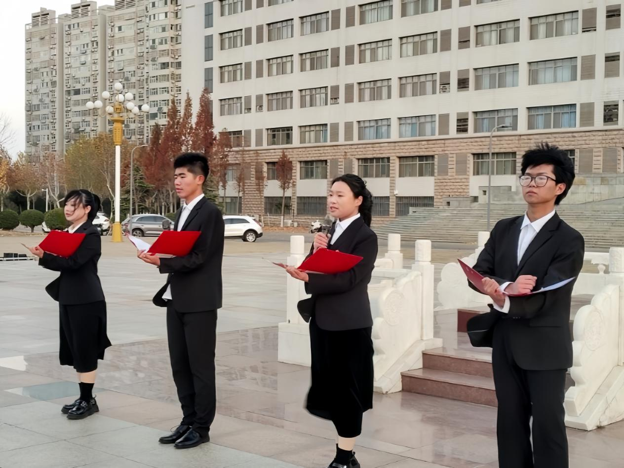 员工代表带来以《法润心田,担当于肩》为主题的朗诵。他们的朗诵声情并茂,扣人心弦,呼吁在场的员工学法、明心、守正道、敬法、励行、铸担当,以青春践行法治,为祖国发展贡献力量。