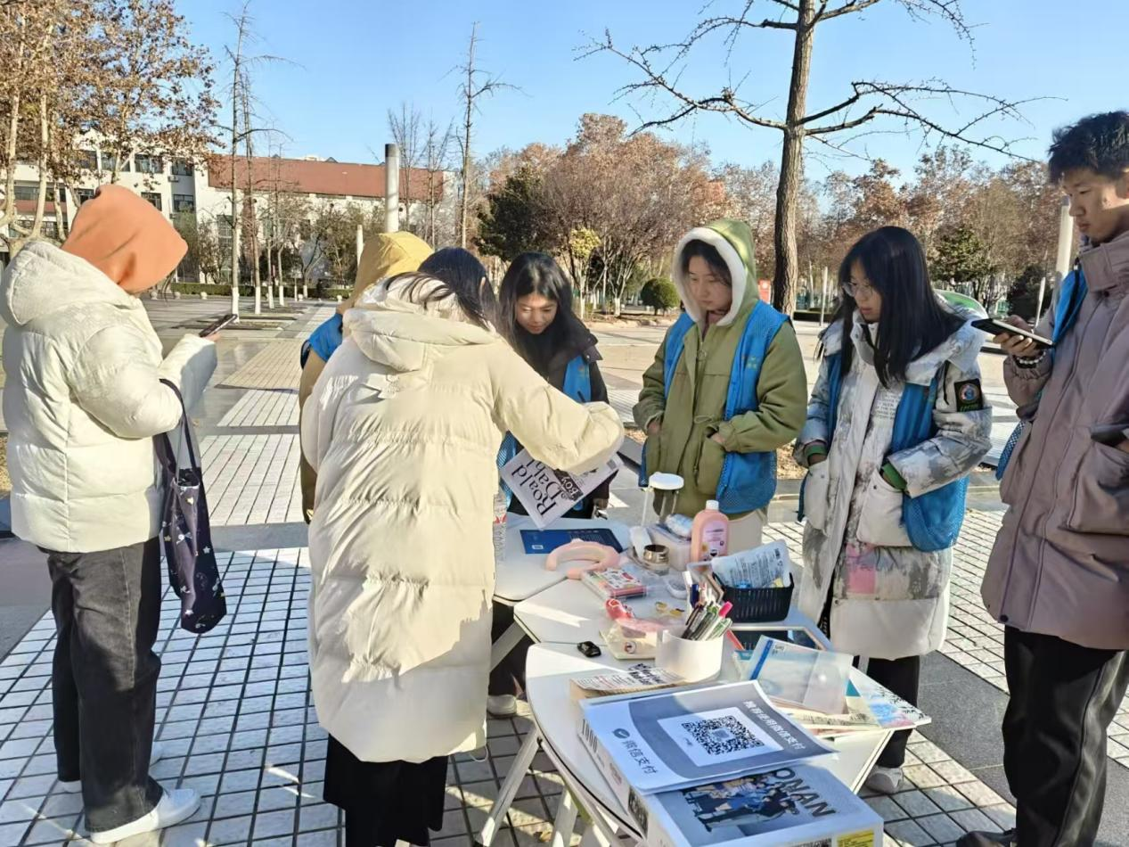 活动伊始,组织人员引领志愿者们抵达星月广场后,便迅速着手搭建义卖平台。志愿者们分工明确,齐心协力,将各类义卖物品精心陈列,以整洁有序的面貌迎接师生们的到来。尽管冬日凛冽的寒风呼啸而过,但志愿者们内心的热情如熊熊烈火,丝毫不减。他们用诚挚的态度与细致入微的讲解,向过往的师生们阐述活动的初衷,介绍义卖物品的特色与意义。他们的热情与努力如磁石般吸引了众多师生的目光,引发了强烈的关注。在志愿者们的不懈努力下,义卖物品被快速抢购一空,爱心在校园中得以传递与汇聚。