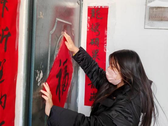 除了舞狮和川剧演出,贴春联也是四川省过年习俗中不可或缺的一部分。队员们亲手挑选大红春联,用毛笔蘸取墨汁,一笔一画地书写着对新年的美好祝愿。随后,他们小心翼翼地将春联张贴在门上,一副副春联不仅装点了家门,更传递着对新一年的美好期盼。