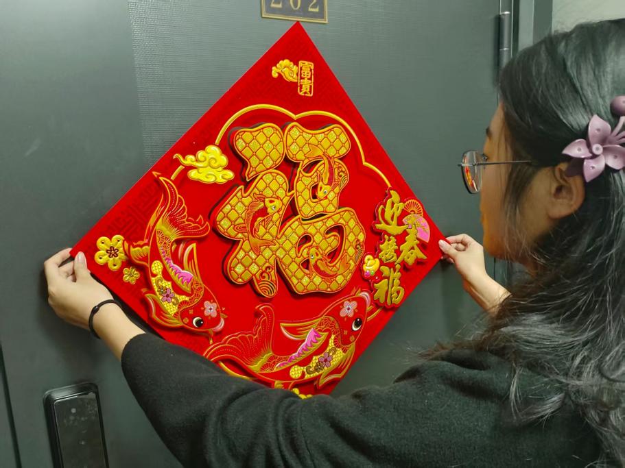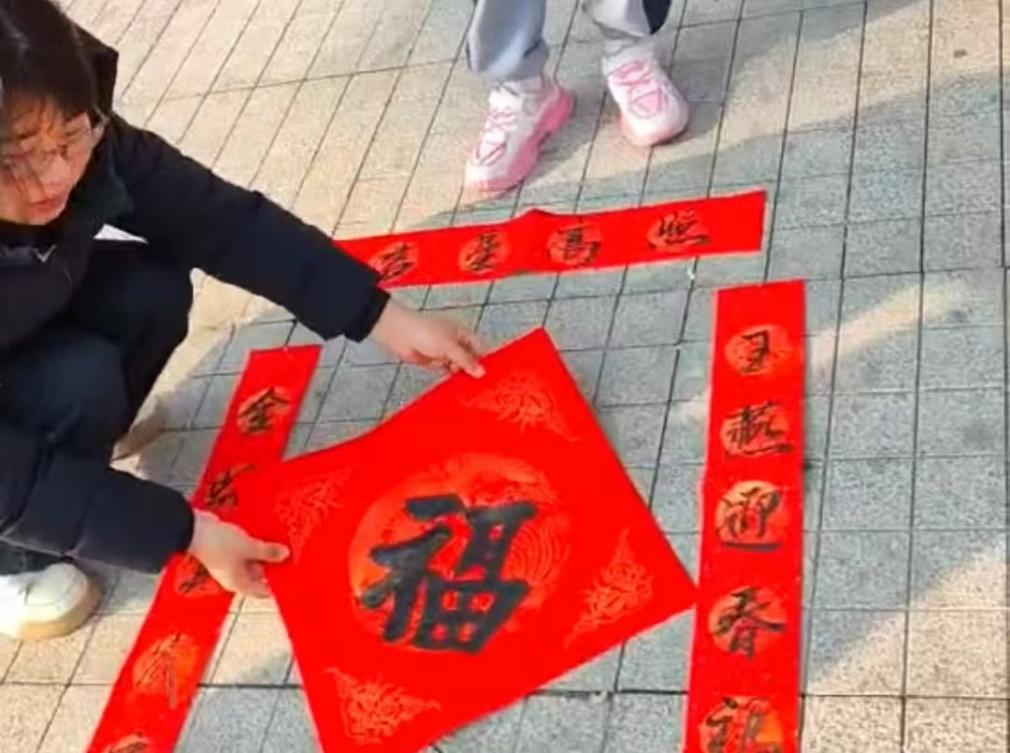 活动期间,主持人简要介绍春联艺术的历史、特点及意义,引发大家对春联的兴趣。随后,队员们组织了义务写春联活动,邀请书法爱好者为居民们现场书写春联。这些手写的春联不仅更具个性化和艺术性,也让居民们感受到了传统文化的魅力和温度。此外,队员们还组织市民们制作了各式各样的春联。这些春联不仅内容丰富、寓意吉祥,而且形式多样、风格各异,既有传统的红纸黑字,也有烫金、镂空等新颖工艺,不仅增添了节日的喜庆气氛,也寄托了人们对新一年的美好祝愿。最后,队员们把制作的春联贴到门上,用春联传递出最真挚的祝福和期盼。