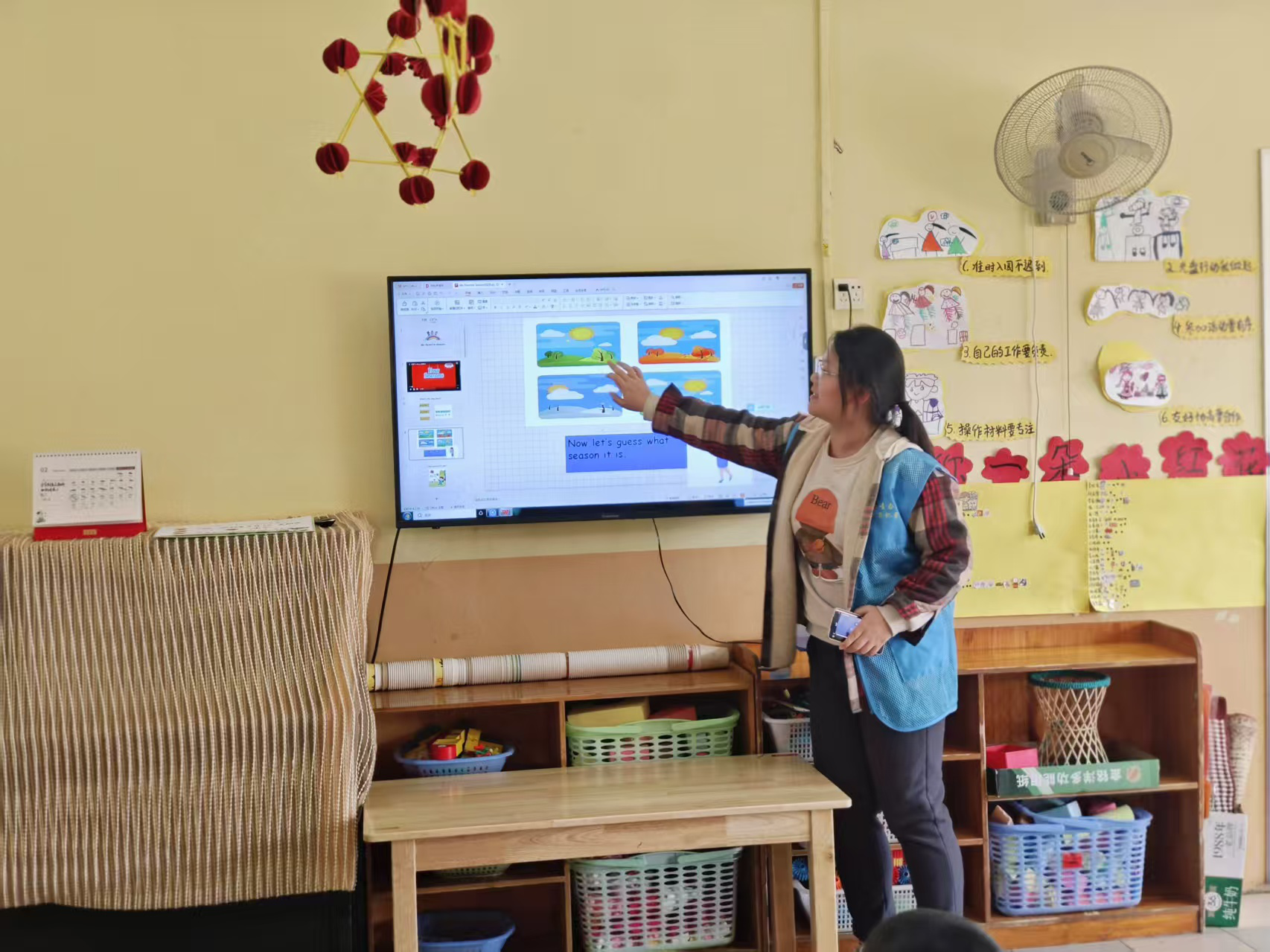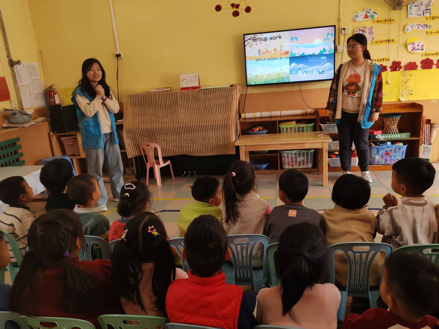 在正式教学环节,志愿者充分利用PPT,为小朋友展示了四季的美景。志愿者耐心地教小朋友朗读和记忆单词,欢快的口诀声在教室里回荡,小朋友学得津津有味。为了加深小朋友的理解和记忆,志愿者还结合日常生活实例,让抽象的单词变得具体可感。在互动环节,小朋友们纷纷踊跃发言,分享自己在四季里的有趣经历,课堂气氛十分活跃。