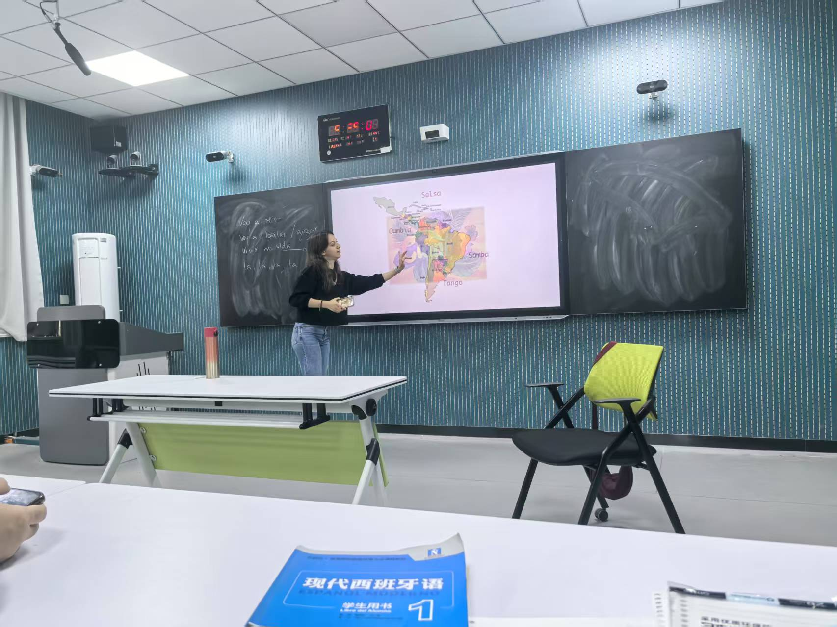 面向大一员工的讲座中,Diana老师以拉丁美洲四大舞蹈——Cumbia(昆比亚舞)、Salsa(萨尔萨舞)、Tango(探戈)和Samba(桑巴舞)为切入点,带领同学们走进这片充满活力的土地。从哥伦比亚的律动Cumbia到巴西的热情Samba,从阿根廷的优雅Tango到加勒比海地区的欢快Salsa,Diana通过生动的视频展示和细致的讲解,让同学们直观感受到拉美人民如何用舞蹈表达对生活的热爱。讲座巧妙地将语言学习融入文化体验,以“pasión(热情)”一词作结,点明了拉美文化的核心精神,也为同学们搭建起理解西语世界的第一座桥梁。