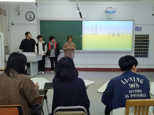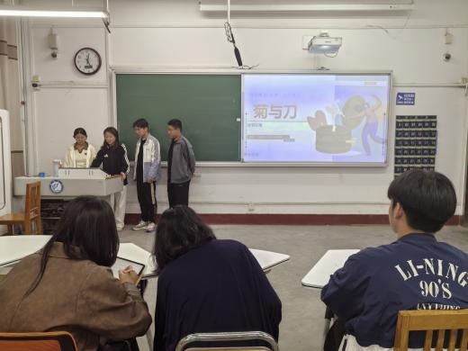 会议伊始,主持人讲解了本次读书会的评分规则并对金玉兰老师进行了简单介绍。随后,金老师作了简短发言,她希望员工们利用好读书会这一宝贵机会增进自己对日本文化的理解,并建议其在拥有一定日语基础后阅读日语原著,真正理解书籍内涵。本次读书会共有五个分享小组,他们分别选择了《源氏物语》《雪国》《我是猫》《菊与刀》《山月记》五本书进行分享。五个小组均选择使用PPT进行辅助分享,他们分工合作,各司其职,有条不紊地进行书籍及作者简介、写作背景、主要情节、主要人物、情感剖析以及心得体会的说明。五个小组分享完之后,担任评委的2022级及2023级学子向各小组分享了自己的阅读经验,并指出了各小组在分享过程中存在的问题,同时也提出了宝贵的改进建议。员工们纷纷表示受益匪浅,收获良多。