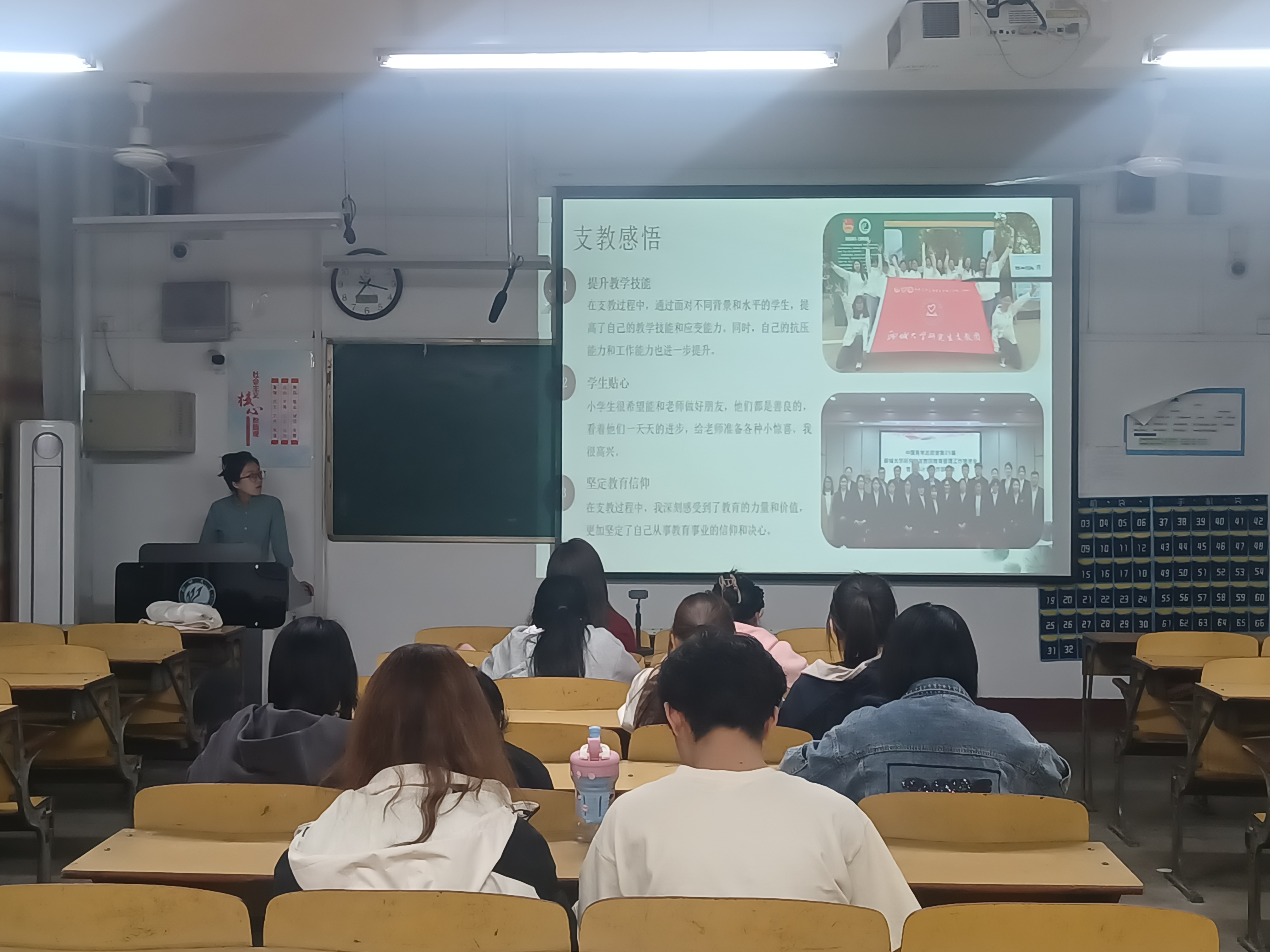宣讲会上,兰凯旋结合自身经历,从研究生支教团和西部计划的政策保障、选拔流程、服务内容等方面进行了详细介绍。她谈到,西部计划为青年学子提供了一个将个人成长与国家发展紧密相连的宝贵平台,无论是教学工作,还是基层服务,都能让参与者在实践中得到全方位的锻炼。