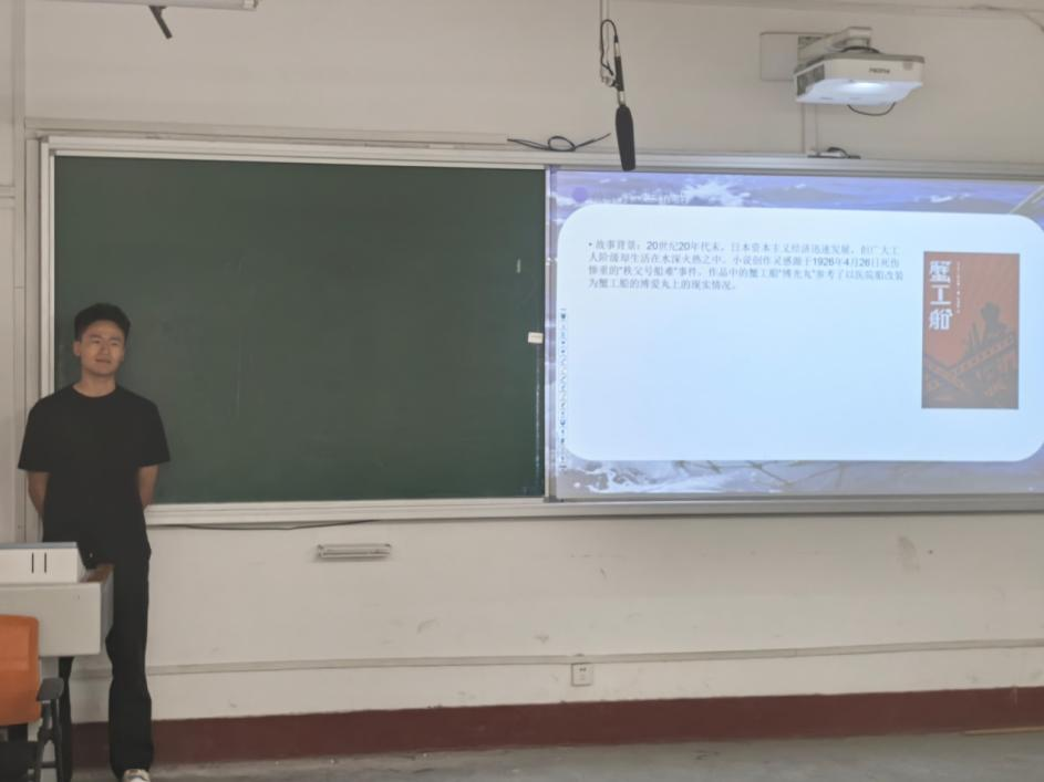 本次读书会以“探寻日本文学的多元之美”为主题,五个精心筹备的分享小组各展风采。他们分别围绕《蟹工船》《解忧杂货铺》《金阁寺》《白夜行》《在森崎书店的日子》五部经典作品展开深度解读。活动现场,每个小组以制作精美的PPT为载体,以流畅生动的日语表达为纽带,从书籍的创作背景、作者生平切入,深入剖析主要情节与人物塑造,细腻挖掘作品蕴含的情感内核与文化价值。有的小组通过对比不同译本的语言特色,展现日语表达的精妙;有的小组结合时代背景,解读作品对社会现实的映照,让晦涩的文学经典变得鲜活可感。