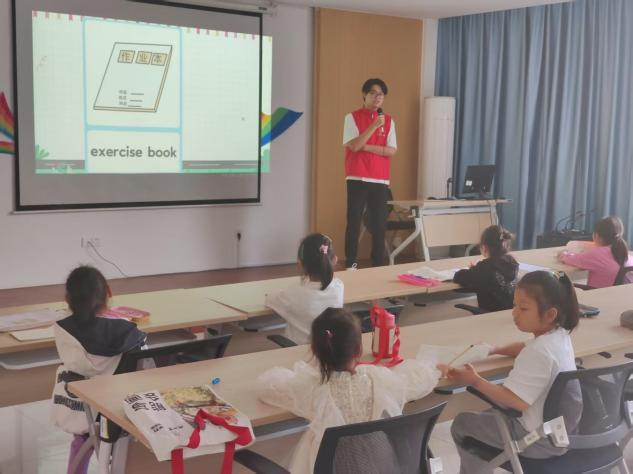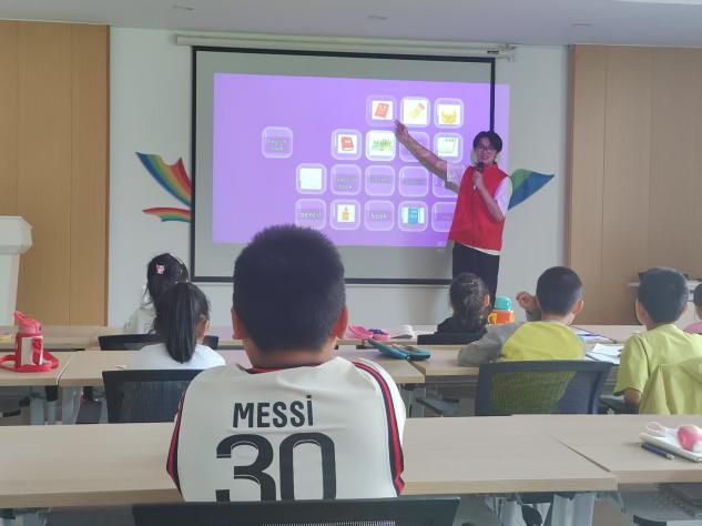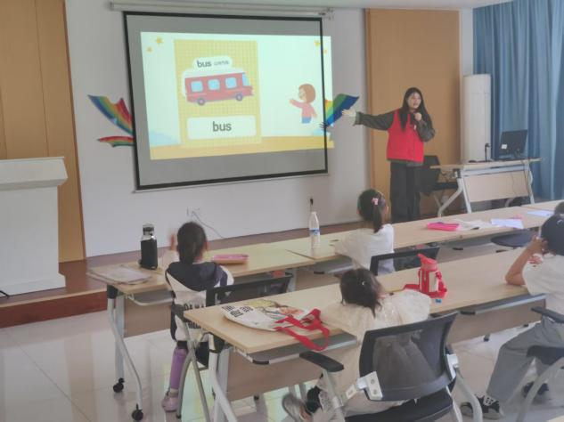 在互动环节,志愿者组织了 “字母接龙” 和 “单词猜猜猜” 游戏。 “字母接龙” 中,小朋友们依次说出字母,反应迅速; “单词猜猜猜” 里,志愿者做出动作或描述事物,小朋友们积极抢答,现场气氛热烈。