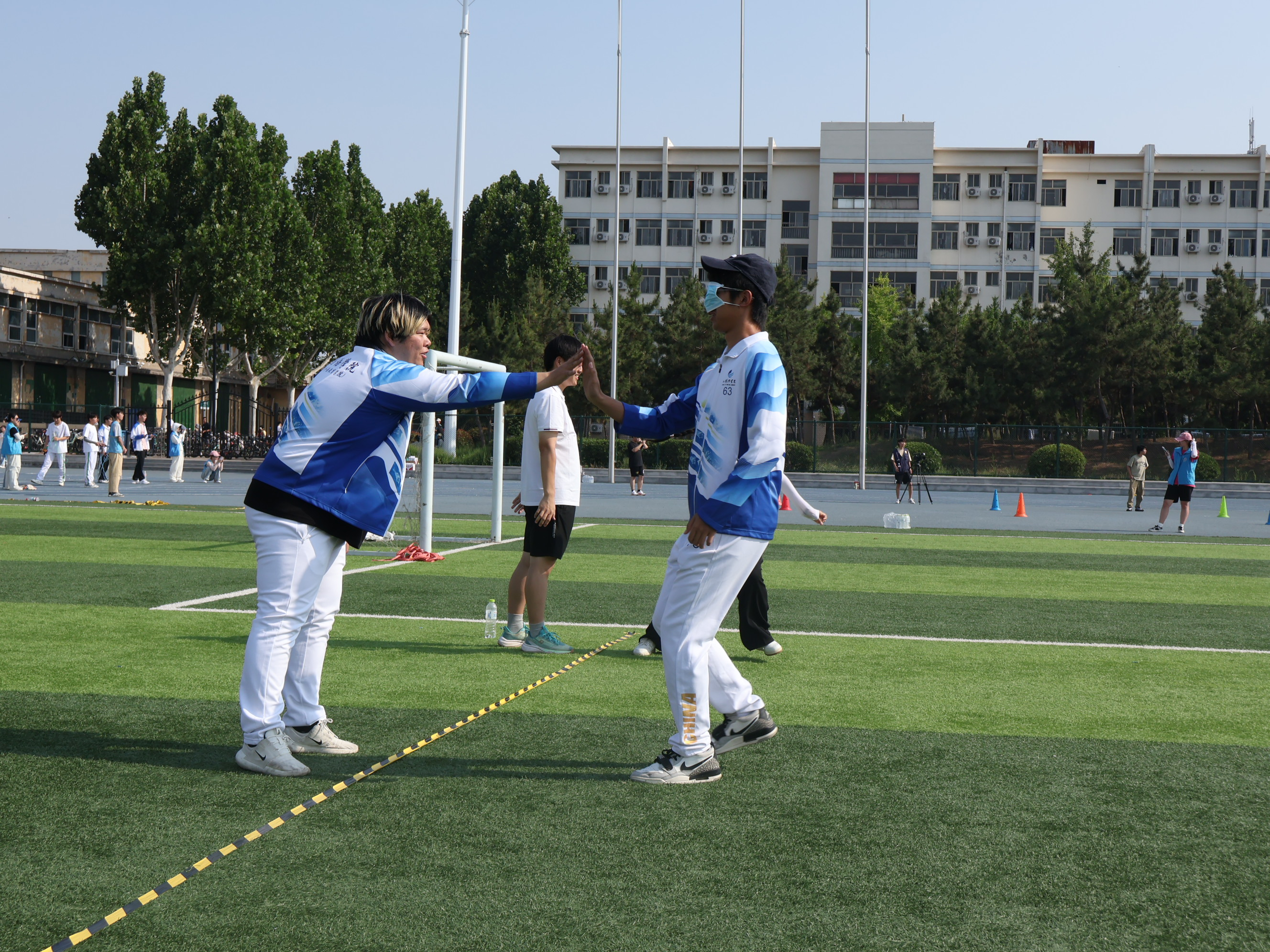 “盲行寻锣”赛场上,蒙眼选手紧握引导绳,在队友的口令声中摸索前行。击掌接力间,信任在语言交织中生长,青春情谊随清越锣音愈发深厚。