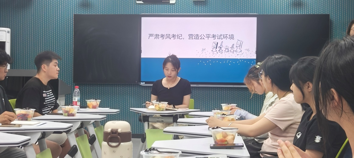 随着四六级、专四及期末考试临近,会议着重强调严肃考风考纪的重要性。钱晓琪详细解读考试规章制度,明确作弊行为认定标准与处罚措施,通过案例警示员工恪守诚信底线,呼吁员工干部发挥模范带头作用,积极宣传诚信考试理念,营造风清气正的考试环境,引导员工们以扎实的学习成果迎接检验。