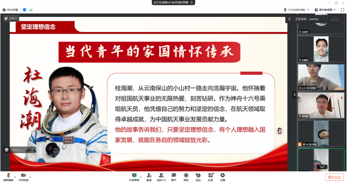 为深化学员对习近平新时代中国特色社会主义思想的理解,筑牢信仰之基,明确青春奋斗方向,将个人理想融入国家发展大局,在服务社会、基层实践中锤炼本领,践行“强国有我”的使命担当,5月20日,第三十五期校级青马工程二组学员于线上学习习近平总书记重要回信精神。本次线上学习由mk体育团委书记孙哲,音乐与舞蹈公司科研秘书、教工党支部书记潘佩佩担任主讲人,第三十五期校级青马工程二组学员全体参与。
