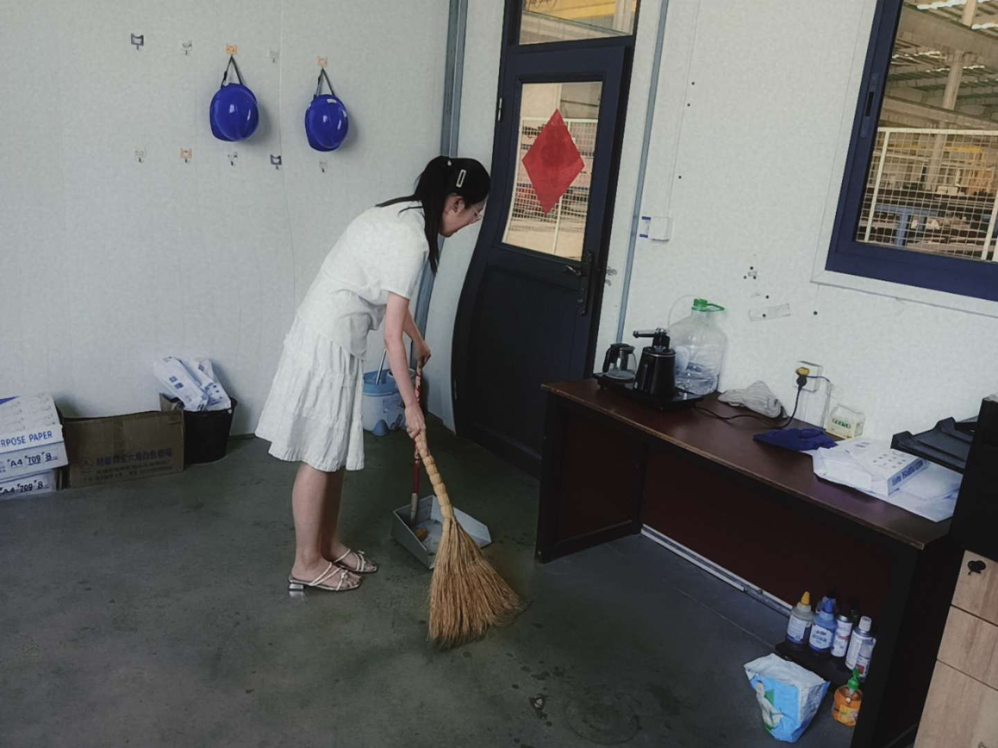 活动中,实践队员工分工明确、行动有序。在社区办公区域,员工认真操作打印机,保障办公文件顺利输出;手持抹布仔细擦拭桌面,让办公环境焕然一新;对堆积文件进行分类整理,规整入档,提升办公资料管理效率 。同时,员工拿起扫帚、簸箕,对公共区域地面垃圾、杂物进行清扫,不放过角落污渍,以实际行动为社区清洁添力。此外,员工还专注于办公电脑前,协助处理数据、文档等工作,助力社区日常事务有序推进。