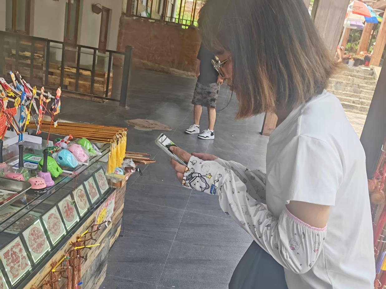 调研期间,团队成员多维度收集一手资料,并与当地工作人员开展座谈。走访大峡谷景区游客中心、文创商店,详细记录现有文创产品的类型、销量及方言元素的应用情况,发现当前景区多以自然风光为核心设计元素,文创种类单一,方言类文创占比为2%;且整体而言,文创销量较低。经过与景区工作人员座谈,了解到方言文化融合文旅开发尚存在若干难点,如“担心外地游客理解障碍”“缺乏系统化设计思路”等。此次调研为项目进一步深化实施提供了思路。