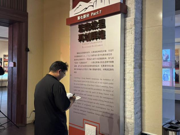 随后,实践队前往孔繁森纪念馆。在援藏展区,成员们通过实物展品与影像资料,学习了孔繁森在西藏推动当地经济发展、促进民族商贸交流的事迹。并结合“一带一路”倡议下的当代商业合作,探讨了如何用外语讲述孔繁森事迹中蕴含的诚信经营、互利共赢等商业理念,将历史丝路精神与当代援藏扶贫中的商业文化相衔接,丰富了研究的时代内涵。