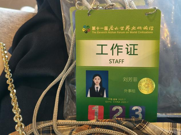 期间,我有幸作为外事组一员,抽调参与第十一届尼山世界文明论坛,承担综合部证件发放工作,确保参会人员顺利高效领证。面对突发应急事件,我也能沉稳应对,同时做好外宾接待,协助保障论坛流程顺畅,共同见证尼山论坛“各美其美,美美与共”的交流主旨。