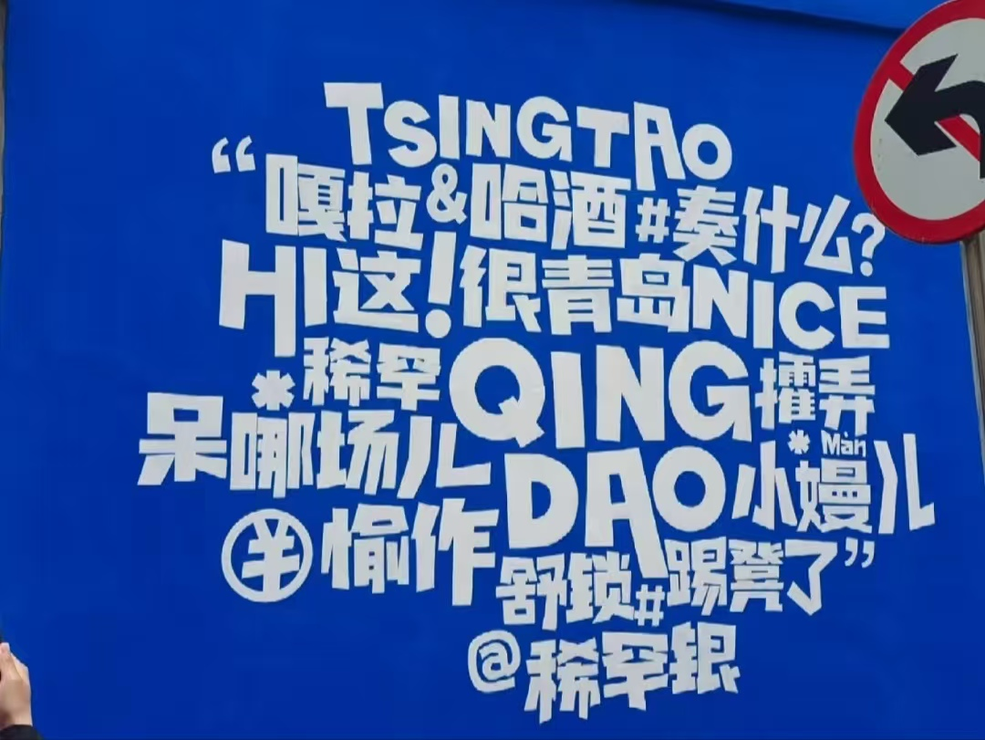 调研过程中,团队成员还发现了一面青岛方言宣传海报,记录了青岛独具特色的方言词汇。宣传海报与其它打卡点设置在一起,方便游客集中打卡,记录与方言词汇精神交融的一刻。海报上有“嘎啦(蛤蜊)”“稀罕人(惹人喜欢)”等多个青岛方言词汇,乡音俚语,正是地域文化最鲜活的注脚,每一个音节都凝结着当地文化的精魂。