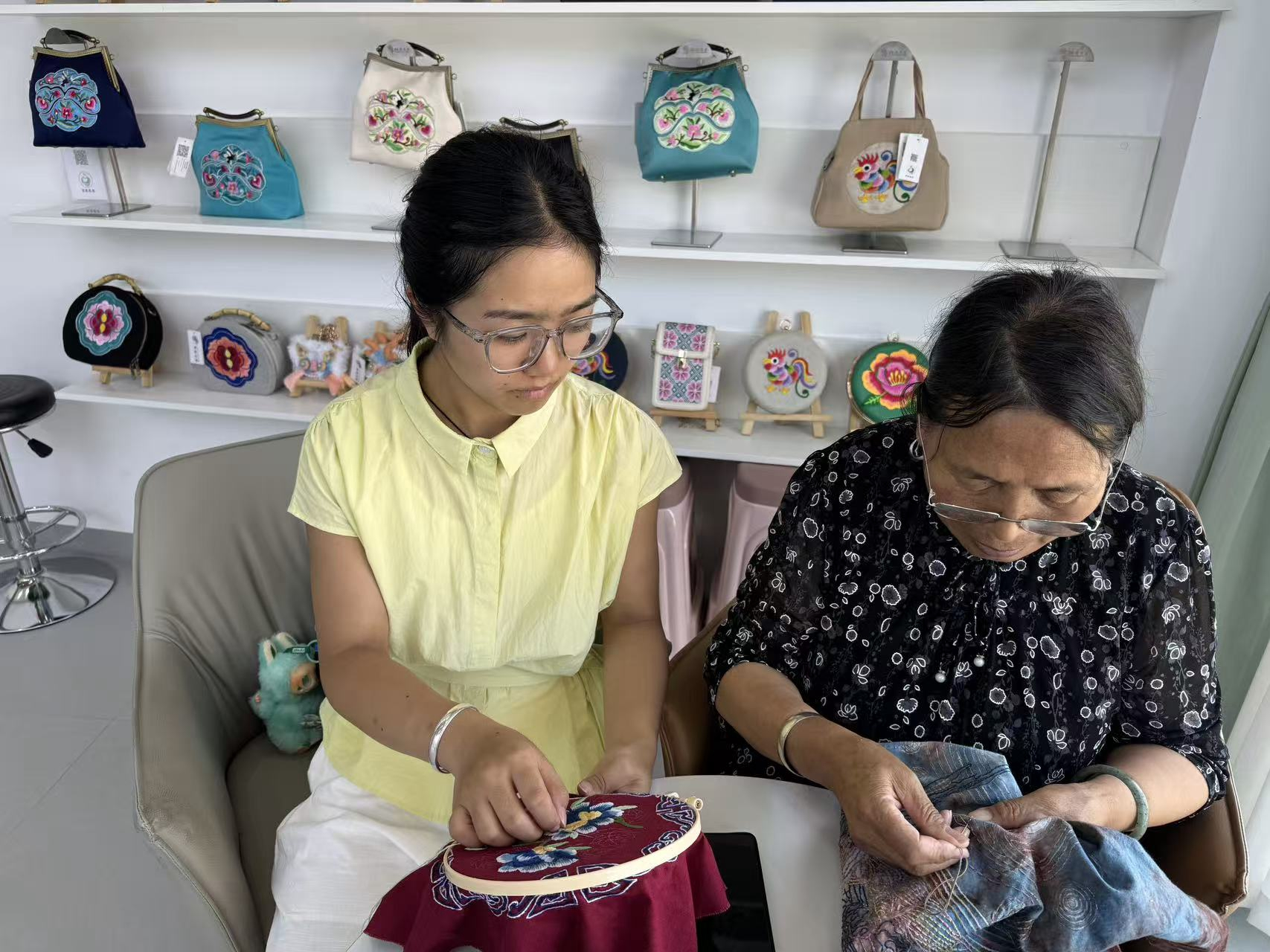在云南省楚雄彝族自治州武定县彝绣馆的实习,让我在琐碎与专注中真真切切地触摸到了非遗传承的温度。我的个人日常工作从清晨的文件梳理开始:将前一日的订单登记表按绣品类型(服饰、挂件、装饰画)来分类归档,同步录入电子表格,标注客户特殊要求;随后检查库房绣线、布料的库存,及时补充后勤物料,确保绣娘们的创作不受影响。