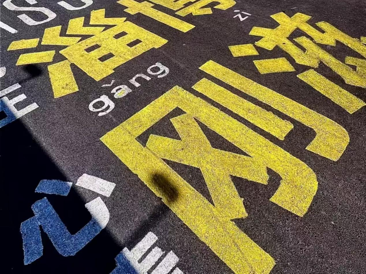 调研返程过程中,团队成员还在八大局便民市场附近发现了一条淄博方言路,记录了淄博当地独具特色的方言词汇。这条马路上用黄色和白色油漆书写“在淄博心情刚滋”,兼用汉语拼音。生动体现着方言文化在地域文化传播中独一无二的作用。