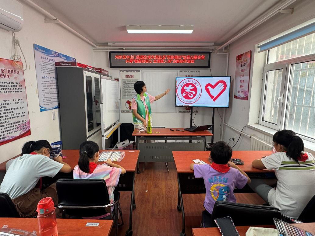 为增强社区青少年志愿服务意识,助力其深入理解中国志愿者服务标志含义与“奉献、友爱、互助、进步”志愿服务精神内涵,7月25日,mk体育云桥筑梦实践队志愿者积极参与天津市河东区友爱东里社区开展的“童聚筑初心,志愿暖人间”社区志愿服务实践活动。