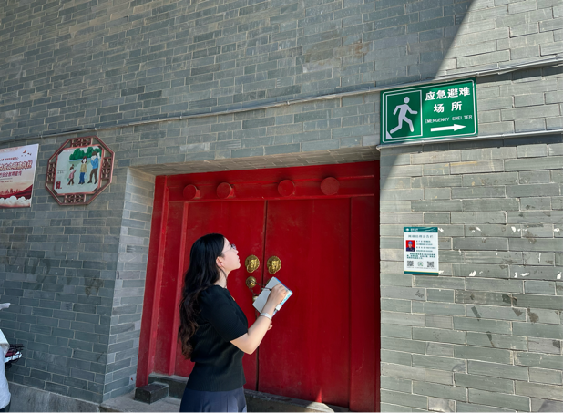 春秋古城涵盖古街巷命名、非遗技艺解说、历史场景复原说明等多元载体,李姝瑶手持记录本与相机,系统考察了古城核心区域的街巷标牌、非遗工坊的技艺解说牌、不同语种对历史人物典故的叙事逻辑是否符合跨文化传播规律。将发现的问题,如部分标识存在“历史语境剥离”问题;部分非遗技艺解说过度使用学术术语,缺乏通俗化转译;多语种标识对历史地名的译法不统一,易造成认知混淆等问题进行了文字记录并拍照,通过与商户、游客、古城管理人员的访谈,收集了不同群体对语言标识的需求反馈。