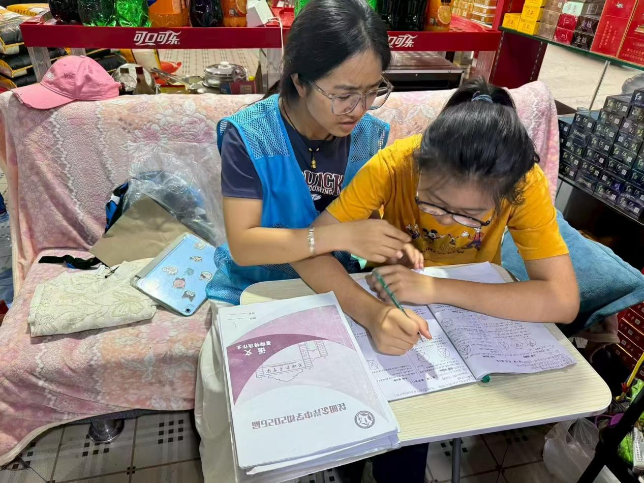 同时,针对社区内部分员工暑期课业需求,志愿者们在社区服务点搭建临时辅导阵地,为孩子们提供一对一课业辅导。从语文阅读理解到数学难题解析,从英语单词背诵到科学知识拓展,志愿者们耐心讲解、循循善诱,引导孩子自主思考、解决问题,助力他们巩固知识、提升学习能力,现场学习氛围浓厚。