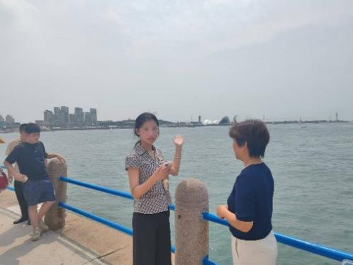鲁韵传薪实践队成员奔赴青岛,聚焦当地历史建筑、非遗技艺、民俗风情等文化元素,开启了一场家乡文化的志愿宣传之旅。成员们走进五四广场周边,漫步海滨,在见证城市独特韵味的同时,主动向过往市民、游客讲解广场的历史背景与城市记忆,用生动的语言描绘这片土地的故事;来到海滩等地,大家深入融入当地风土人情,通过与市民面对面交流、现场讲解的形式,细致介绍青岛的民俗特色与海滨文化,让更多人近距离感受家乡文化的魅力。