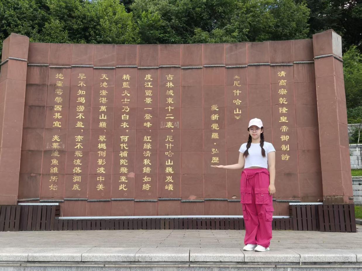 8月10日,祝靖涵前往吉林市昌邑区龙潭山遗址公园,先在高句丽古城墙遗址结合史料学习建筑工艺与历史背景,感受先人在有限生产力下构筑防御工程的坚韧精神;随后前往“水牢”(龙潭)遗址,观察形制并聆听先人利用自然水源构建水利设施的历史,围绕“人与自然和谐共生”理念交流感悟,记录关键信息与自身思考。