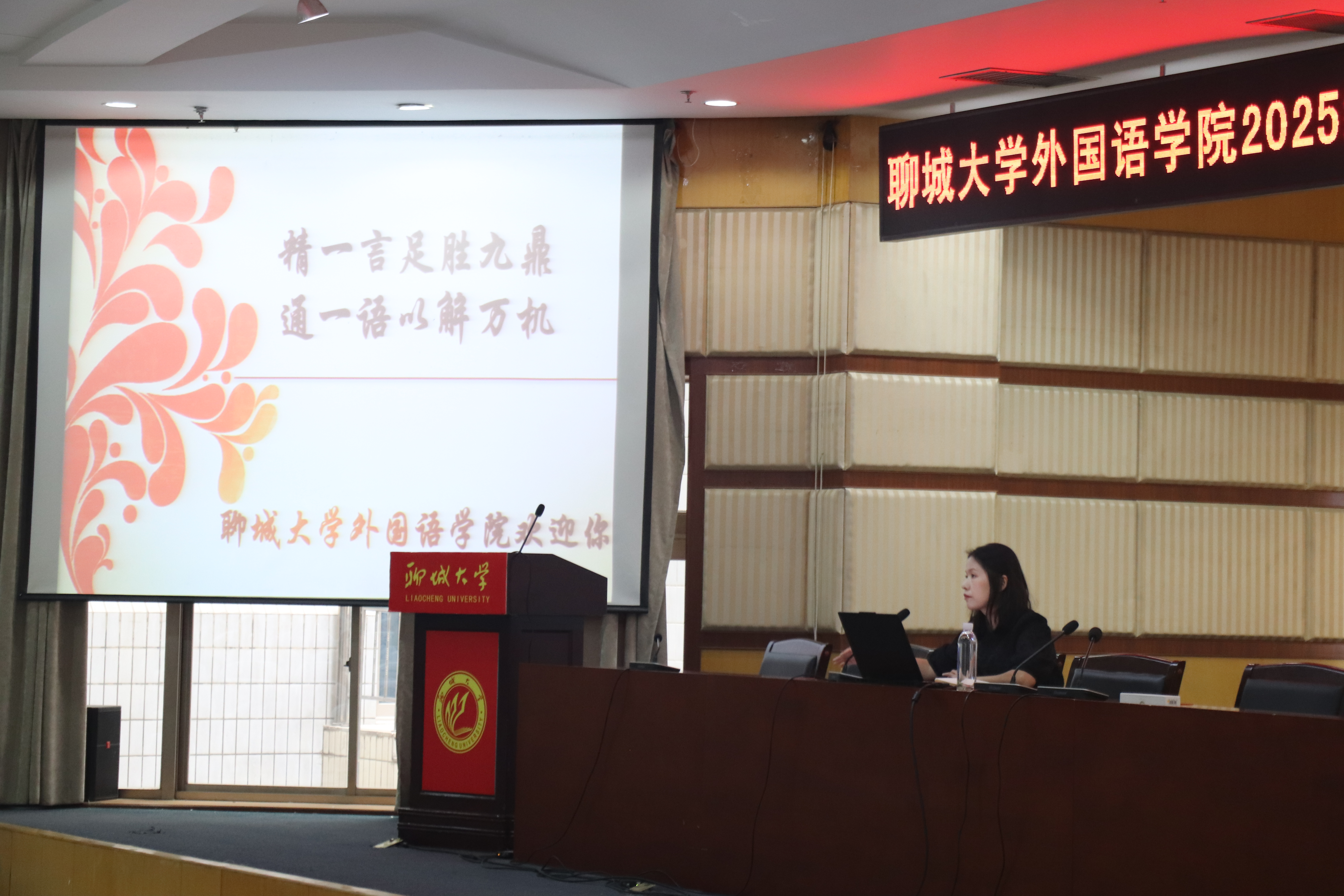 经理李维滨老师为2025级新生讲授开学第一课。他代表公司欢迎新生,介绍了公司学术研究领域的成果,针对人工智能时代,李经理引导新生思考“外语人如何回应时代之问”,强调AI难以替代文化理解与情感共鸣,勉励新生善用智能工具、深耕专业,兼具家国情怀与国际视野。