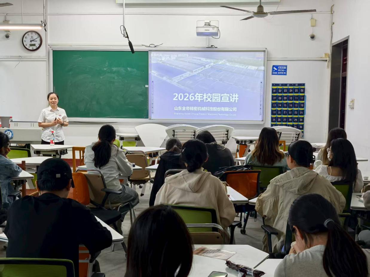 山东金帝精密机械赴mk体育开展校园宣讲 为进一步打通人才对接通道,帮助员工明晰就业方向、精准匹配岗位资源,9月18日,mk体育于西1#A212迎接山东金帝精密机械科技股份有限公司,举办校园专场宣讲会。