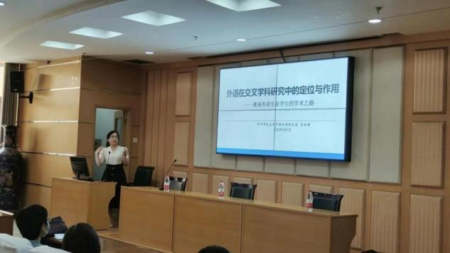 讲座中,肖盼睛副教授结合自身经历,从四方面展开分享:一是分析外语学科在国际化背景下的优势与特殊性带来的劣势;二是探讨AI技术对外语专业的冲击与影响;三是解析就业、考研、留学等毕业选择的前景;四是结合实例阐述外语在交叉学科研究中的定位与作用。