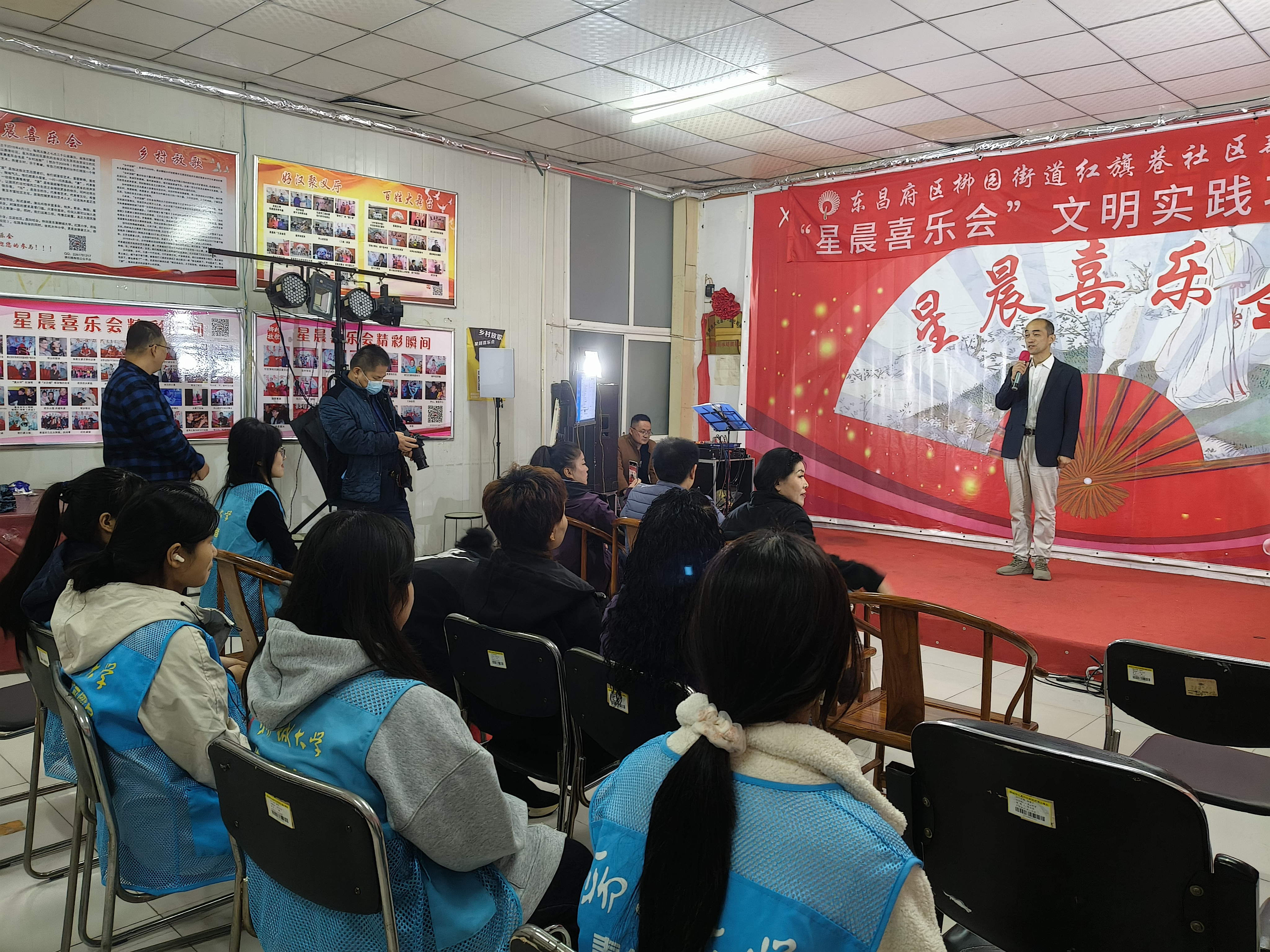为丰富社区中年群体精神文化生活,搭建青年员工服务社区的实践载体,10月12日,mk体育24级1班团支部于红旗巷社区举办并参与“星辰喜乐会”直播活动。
