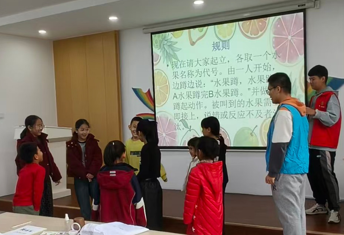活动当天,志愿者们精心准备了形式多样的教学内容。他们没有采用传统的灌输式教学,而是通过水果蹲、击鼓传花、动作大冒险等互动性强、寓教于乐的方式,迅速吸引了孩子们的全部注意力。教室里欢声笑语不断,孩子们在轻松愉快的氛围中,大胆开口说英语,积极参与互动,原本陌生的字母和单词仿佛变成了有趣的音符和图画。