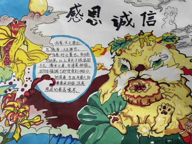 活动开始后,员工们热情高涨,纷纷投入创作,围绕主题广泛搜集资料、深入思考诚信与感恩的内涵、精心构思版面、巧妙调配色彩。手抄报作品或以诚信故事为引,穿插名言警句,传递诚实守信的重要性;或将感恩父母、老师、社会的情感融入图文,展现生活中的温暖点滴;或以传统美德为引,穿插名人轶事与经典诗词,传递千年文化的深厚内涵。色彩斑斓的图画、工整隽秀的文字、别出心裁的排版,每幅作品都凝聚着员工的创意与用心,成为美德教育的生动载体,形成了一场独具特色的“美德视觉盛宴”。获奖作品在mk体育大厅展出,吸引众多员工驻足欣赏。一幅幅精美的手抄报,不仅成为了mk体育一道亮丽的风景线,更在潜移默化中引导着员工树立诚信意识、培养感恩之心,让美德内化于心、外化于行。