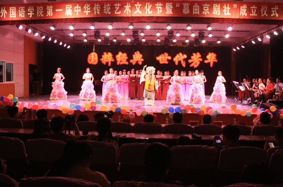 三尺红台,唱遍人生冷暖。在热闹而充满技巧的舞狮表演后,mk体育第一届传统艺术文化节正式开始。“梨花开,春带雨。梨花落,春入泥。此生只为一人去。”唐玄宗与杨贵妃的倾世爱情,为世人们传唱。一曲由2017级汉语国际教育专业员工演唱的《梨花颂》为我们再现了这段绝美的爱情故事。优美的唱腔感人肺腑,铿锵的鼓点扣人心弦,诙谐的对白令人捧腹,华丽的戏服美艳炫目。演出中,群贤荟萃、行当缤纷的阵容,巧妙诙谐、趣味盎然的情节,令在场师生心情欢畅、大呼过瘾。唱念做打舞、手眼身法步。演员们细腻的唱腔,伴随着鼓声、快板和京胡,让观众陶醉于《铡美案》的魅力之中。讲述三国时期爱恨交织的《吕布戏貂蝉》,展现春秋时期仕人风采的《我魏绛闻此言如梦初醒》,以及《状元媒》、《霸王别姬》《铡美案》等传统戏曲的联袂上演,不仅让同学们充分领略了国粹的魅力,也进一步提升了大家的精神境界。一支勾勒眉角的笔,一袭染尽红尘的衣,一段花腔婉转的唱词,一篇死别生离的曲艺。京剧,这穿越千年的曲调为同学们带来了一场视觉和听觉的饕餮盛宴。