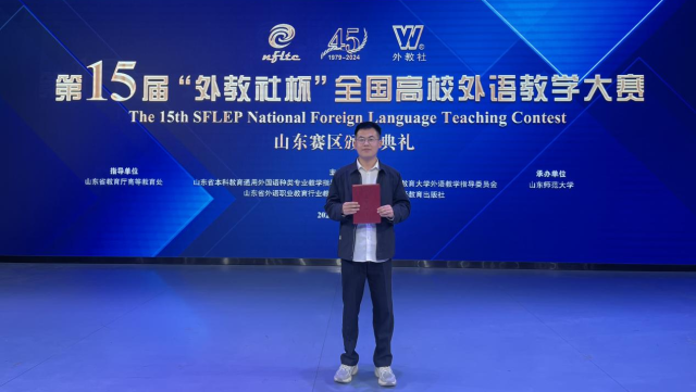 “外教社杯”全国高校外语教学大赛是中国外语教育界最具影响力的比赛之一,本次比赛由山东省教育厅指导,山东省本科教育通用外国语种类专业教学指导委员会、山东省本科教育大学外语教学指导委员会、山东省外语职业教育行业教学指导委员会、上海外语教育出版社联合主办,山东师范大学承办。比赛设本科英语专业组、本科大学英语组、高职公共英语组三个组别,省内126所高校组织参赛。通过初赛选拔,共推选162个团队参加复赛,最终156个队伍抵达济南参赛。经过复赛和决赛的激烈角逐,每组各有4个团队获一等奖、6个团队获二等奖、10个团队获三等奖。