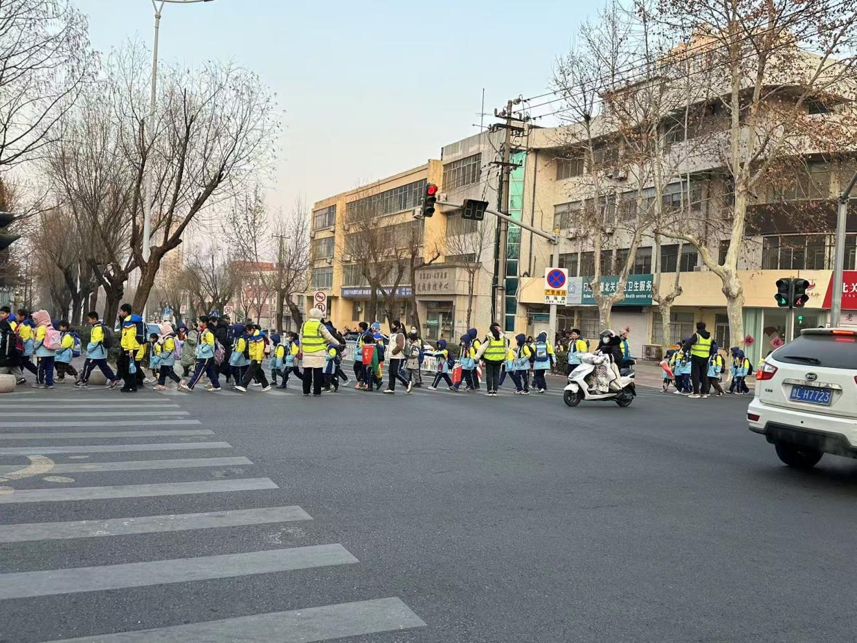 活动当天,“益”路有我实践队成员来到山东省日照市东港区金阳社区,与其他志愿者一起,身着统一马甲,手持引导旗,护送小员工安全通过马路,为孩子们撑起“平安伞”。他们提醒孩子们注意红绿灯与往来车辆,并示意车辆减速慢行,保障了孩子们的出行安全。